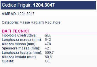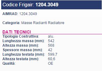 MASSA RADIANTE x RAD. IVECO 0204.3049 0204.3060/61 542x568x42 C.599,7 60.6