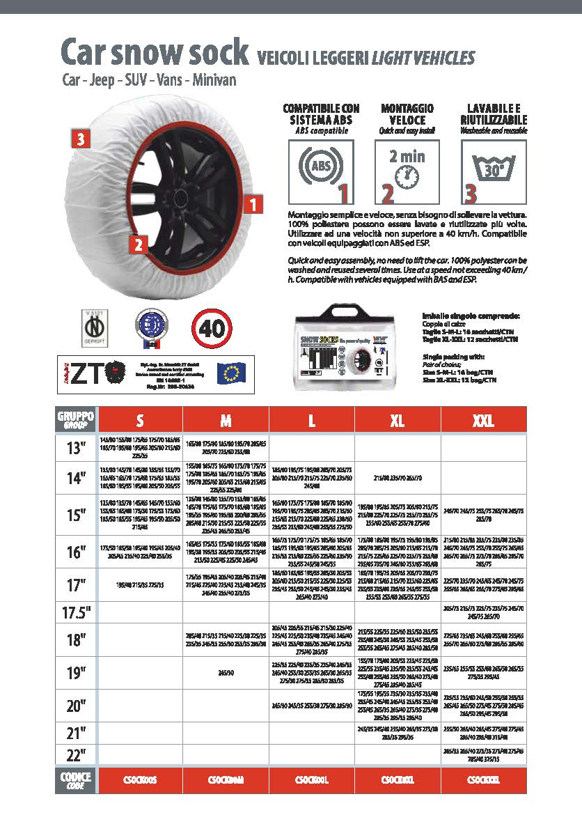 CAR SNOW SOCKS - CALZE DA NEVE AUTO - TAGLIA L